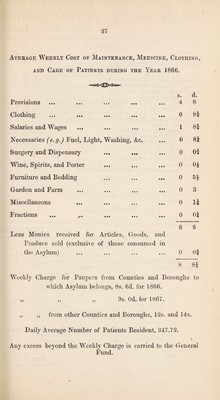 Credit: The eleventh annual report of the state of the United Lunatic Asylum for the county and borough of Nottingham, and the fifty-sixth of the original institution, formerly the General Lunatic Asylum, 1866. Source: Wellcome Collection.