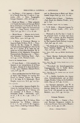 Bibliotheca japonica : dictionnaire bibliographique des ouvrages relatifs à l'Empire japonais rangés par ordre chronologique jusqu'à 1870, suivi d'un appendice renfermant la liste alphabétique des principaux ouvrages parus de 1870 à 1912 / par Henri Cordier.