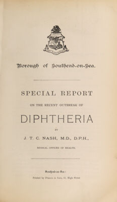Special report on the recent outbreak of diphtheria / by J.T.C. Nash, Medical Officer of Health.