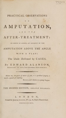 Practical observations on amputation, and the after-treatment: to which is added, an account of the amputation above the ancle with a flap. The whole illustrated by cases ... / [Edward Alanson].