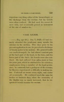 Credit: A practical essay on stricture of the rectum; illustrated by cases, showing the connection of that disease with prolapsus of the rectum, irritation of the lungs, affections of the urinary organs, and of the uterus, fistula, &c.; to which is now added, some practical observations on piles, and the haemorrhoidal excrescence / by Frederick Salmon. Source: Wellcome Collection.