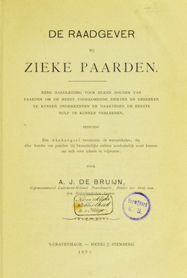 De raadgever bij zieke paarden ... / door A.J. de Bruijn.