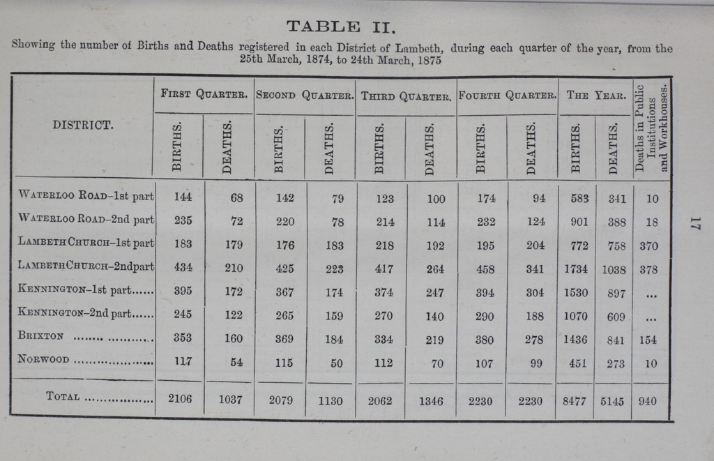 Credit: [Report of the Medical Officer of Health for Lambeth]. Source: Wellcome Collection.