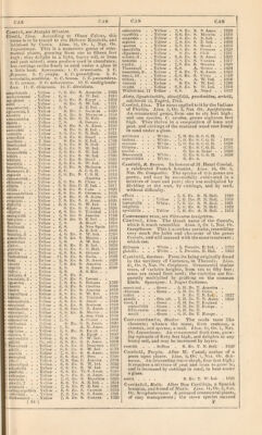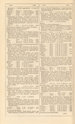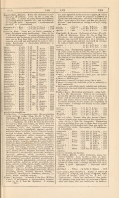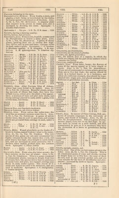 ![CARnC>'CELCs, Adanson. From the diminutive, cnr* dtinciiluSf of cfirdoiiii. Litm^ ly, l.h*. 1, Nat. (Ir. rom/)o«ihe. A irenus of pretty herbat'e«ius plants, sucoeediiiff well in common soil, and increased bj' dividing the roots. Stjnoniipnes: 1. (Jari/unnus mi' mitUsimQs 1 . . Blue . . 6, H. Her. P. France . . 17Td CardCCs, Linn. From ard, in Celtic, meaning a point, the plants being mostly spiny. Linn. 19, Or. 1, .Nat. Or. C<»mp(Mi7te. A coarse, though somewhat ornamental and numerous genus of plants, growing from one to four feet high; they succeed in any common soil, and are multiplied by seeds <*r divi- sions. Synonymes: Carlina pyrenaica. 1. Onopordion deltoideuu petBgrinus . . . Purple • 7, H. A. 1810 PerionAti . . . Purple . 7. H. B. Austria. 1770 podacAnthu^ . Purple . 7, H. Her. P. France . 1819 pvenocApliAlus . Pttrple . 7, H. Her. P. 8. Eur. . . 1739 st-miDucus . . . Purple . 7, H. B. Caucasus 1819 uocioutOs . . . Purple . 7, iJ. B. Tauri.v . 1817 vulgeii.sls . . Piiiple acaniholdSs, tenuiflOrfia. . 7, H. A. Volga . . 1829 Carex, Lhtri. Frctm curco, to want; the upper spilces being without seeds. Linn. 21, Ur. It, Nat. Or. C^yperacea. This genus is extensive, and the spe- a’-*'nniniere.'iting; part of them are natives of n.Af.M' situations, a/id a few do best on dry sandy eminences; they seed freely, by which they' are increased. Stjnvnymes: l.C.scotica, 2. C. sffnminea —acuminutu, actitCi, alba, aIpBstrla, ainblcocarpil, arnpullucBd, SncSps, aiiguatifOltii, appr?a$d,amiSt'ilis, arenurfd, utrdiii, axillOrla, blcOlOr, hinSrvU, bracfn/- atfichyd brizuTdia, bullutd, Uuxbufinihl. cipspHOari, capiUurla, chordorhTzd, ciliutd, clandcstlnd, cuUln'i, conulobritd, crinUd, cflrW, curi’dld, ct/peraldBa, DavuUiilnd, depauperdid, diffildtd, dhilcdy dIaidns, Jivtad, divQlail, eluiif'dtd, extSnad,j'crriipln6d,Jliivd, Jl/i/nrniIs,^ftTnbridldiJIexnbadfJ'CrrBu, fdtidd, Fraaer- idnii,J filvd,{iture{iea,f'ranu/drla, hlrtil, burdeijdnnia, incbrvd, intertin’dld, invSrad, JfiricBu, Juudfolhi, Ixvit'dld, iafiopi)dioJdCa, h porlnd, lencu-^lOchln, li- wnau, lubatn, hlidced, lOnulpSa, /eMtflrflni, MichBlH, MielichltJ'ird 1, microatdchijd, inucrundtd, miiliiHOtu, vniricutd, nemurdad, nltldd, norvStflcd, nOli'nia, CEdBrIJ, ovdila, paUPacBm, jniludOad, pnnicBd, pariicu- lu/d, pnr/jdffxd, piiucijlfird, pBnduld, pfuinaluchf/d 2, pUdsd, pitnlifBrd, pliintaf’inBd, ] iidocdrpd, priicnx, paeC/JO cypfrOa, puliciltla, jifilld, pyreiidled, rni-i- llOrd, recdrvd, remold, rOpPna, rl^ldd, ripdrid, rOadd, roatrdld, rupBstrla, anifnd, aaxd^llJs, schtxnvJdBs, Schrehtrl icojulriu, tecuiJud, apeiroaldchf/d, aphnro- aldchyd, atdluliltd, atenuphylldt alictncdrpd, atijiutd, alrarnJnBd, alrletu, atrii'Oad, aylvdllcd, teiiBlld, tertlinscfi/d, thurhiaidli'd, hnnenlOad, utnbrOad, na- tuldtd, VGhll}, veaicdrlu, vu/plmi. Carhva, Hnxburfih. In lionotir <»f the Hev. William Carey, of Serampore, a distinguished botanist. Linn. ItJ, Or, 8, Nut. Or. Muriaceit:. C. herbacea [ 1 is a most splendid herbaceous stove-plant, of rather dirticult culture ; it must be grown m a mixture of light loam and sandy peat, carefully watered at all times, particularly in winter, and tlie pot properly' drained ; and the mode of raising it is by dividing arbOriVi .... Reit yel. . S. Et. T. E. Ind. . . 1823 Kplucr/cd . • . Ked . . 8. Ev. S. E. Ind. . . 1803 CargTi.i.Ta, R. Bfomn. In hommr of James Cargill, of Aberdeen, l.ian. 23, Or. 2, Nat. Or. Ehenaceie. An interesting genus of greeniiouse plants, that succeed best grown in a mixture of peat and open loam, and are increased by cuttings in sand, or sandy soil, under a glass, a.otifilis ... G. Ev. T. N. Holl. . 1810 CarTca, Linn. Erroneously supposed to be a native caulidurit . . Green . . S. Ev. T. Caraccas . 180(3 L-itrit'OrmIs . , S. Ev. T. Lima . . 1820 niicrocArpil. S. Ev. T. Caraccas . 1890 nioiiuica . . . M ill. grn. S. Ev. T. . 1818 PapayA . . . . . Green . . 7, S. Ev. S. India . lOSiU p\ rilomiis . . S. Ev. T. Guiana . . 182: spiiiu.-d, 1 . . , . M'lit- grn. S. Ev. T. Guiana . . 1821 Carina, a keel like that of a boat, also tJie lower petal of a papilionaceous flower. Cari.vate, keel-shaped. C.VRiNATKi.Y-wiNoEo, liHving H wing like a keel. CariopsIs, a one-celled, small, indehiscent pericarp, of grasses. CarIssa, Linn. Derivation not known. Linn. 5, Or. 1, Nat. Or. .4puct///«ce/p. This is an ornamental peat and loam ; and to grow in pots, shiuild be carefully drained, as the plants are impatient of inncli water. Cuttings root freely in sand, under a glass, in heat. carSni'ni . . . Wbite . . 7. S. Ev. T. E. Ind. . . 1790 Iniicruiaia . . . AVbite . . ,, Jj. Ev. T. N. Hoij. 1822 ovf.l.i . . . .Wl.ita. . H, .S. Et. T. N. H(.1L iHiy epiiiArfim . . . While . . 7. S. Ev. T. E. liid. . . 1819 XylopicToii . . Willie . . 7. 8. Ev. T. Manririus . 1820 Caui.ina, Linn. Named after the famous Charle¬ magne, wliose army was cured of the plague by it. Linn, 19, Or. 1, Nat. Or. Cinnpositn'. Interesting plants, attaining from one to three feet high, and succeeding well in garden soil; they are easily in¬ creased fiom seeds. .* 1. C. siilphurca. 2. C. bracteata. acanthifolM . . Whiio. . C, H. Her. P. CHiniola . 1818 Qcnulls .... yv'idte. . 0,11. Her. P. Ituly . • 1840 CrtulCscCna . . h.to . . (i, H. Her. P. Swittcrl. . 1819 BKuregAtu . . . While . . 7. M. Her. P. Himgury . 1804 BieberBteiiiifini . . 8, H. Her. P. (.’num.sus . 1810' oorviiilOsH . . . Yellow . 7,11. Her. P. .S. Eur. . 1049 lanfltil . . . .P, rjiie .0,11. A. S. Eiir. .1083 l>''au .... . 0,G. b. C. G. H. . 1810 rnfi'iiiO-A, I . . Yellow . 7> H. A. Spuin . . lOoH slfulrt, 2 ... . 7.H. U. Sicily . . 1827 blnipU'x. . . . While. . 0, H. Her. P. Hungary . 1810 vul^'drla. Caumnk thisti.r, see Carllnd. CAiiiowiziA, iMixnch, After Carlowiz, some tin- known botanist. Linn. 19, Or. 1, Nat. Or. Com- jmsilx. 'I'his is a pretty greenhouse shrub, attain¬ ing the height of three feel; it thrives best when grown in sandy loam ; cuttings root f
