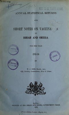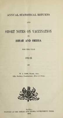 Annual statistical returns and short notes on vaccination in Bihar and Orissa.