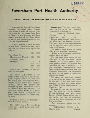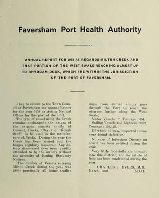 [Report 1938] / Medical Officer of Health, Faversham Port Health Authority.
