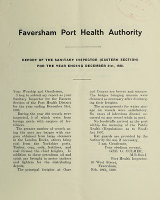 Credit: [Report 1938] / Medical Officer of Health, Faversham Port Health Authority. Source: Wellcome Collection.