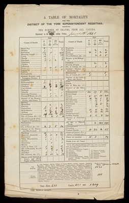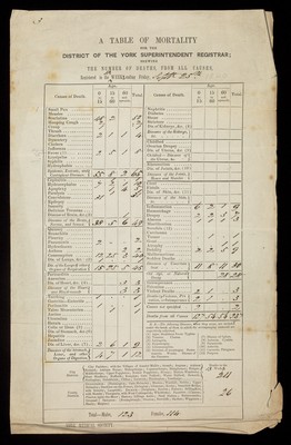 Credit: Tables of Mortality for the York Superintendent Registrar's District, showing the number of Deaths from all Causes. Source: Wellcome Collection.