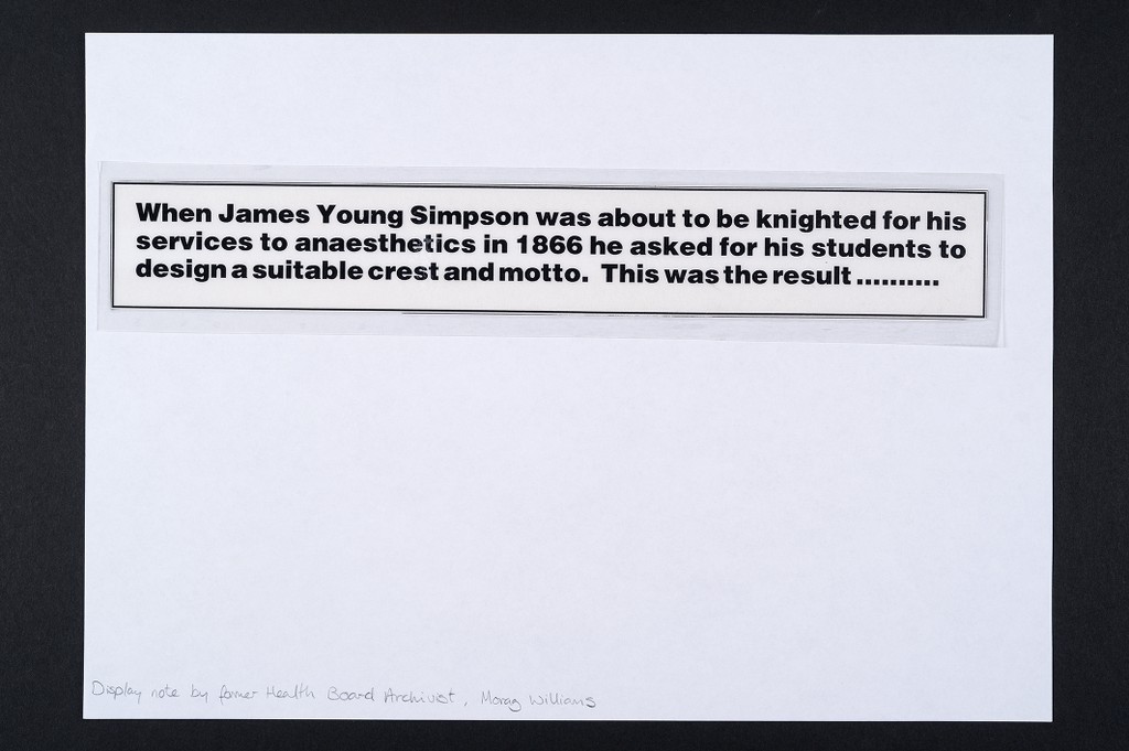 Unknown - Crest with Motto, 'Does your mother know your [sic] out'.