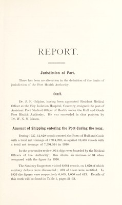 [Report 1937] / Medical Officer of Health, Hull & Goole Port Health Authority.