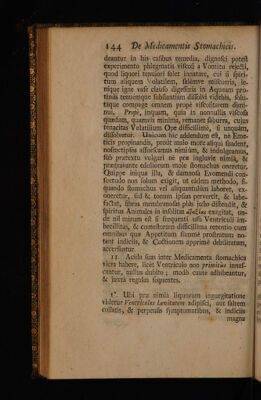 ![U |z* SPA WERE 0 E L2 po 4 bcxe SAC . : cuu «E. - Emo JEUME SaL Pe a ue s) mn ams Toy My Eno emi LI ad AS s NC Ca] c tmm | ut *. — 4 144 (De Medicamentis Stomachias. deantur in his cafibus remedia, dignofci poteft experimento. phlegmatis vifcofi à Vomitu rejecti, quod liquori tenuiori folet innatare, cui (i fpiri- . tum aliquem Volatilem, falémve mifcueris, le. . níque igne vafe claufo digefferis in Aqueam pro- tinüs tenuémque fübítantiam diffolvi videbis, folu. tàque compage omnem prope vifcofitatem dimi- nui Prope, inquam, quia in nonnullis vifcofa quzdam, quamvis minima, remanet faburra, cujus tenacitas Volatilium. Ope difficillimà, fi unquàm, diffolvetur. . Unicum hic addendum eft, né Eme- ticis propinandis, proàt malo more aliqui füadent, nofmetipfos affuefcamus nimiüm, & indulgeamus, füb prztextu vulgari né prz ingluvie nimíá, & pregravante eduliorum mole ftomachus oneretur, - Quippe iniqua illa, & damnofa Evomendi con- fuetudo non folum exigit, ut eàdem methodo, fi. quando ftomachus vel aliquantulüm laboret, ex. oneretur, fed & tonum ipfius pervertit, & labe. factat, fibras membranofas plis jufto diftendit, & fpiritus Animales in infolitas zJaZíe«s exagitat, un- de nil mirum eft fi frequenti ufü Ventriculi im- becillitas, & comeftorum difficillima retentio cum omnibus quz Appetitum fümme proftratum no- tant indiciis, & Cottionem apprimé debilitatam, accerfantur. II. Acida fuas inter Medicamenta ftomachica vices habere, licét Ventriculo non primitzs innaf- cantur, nullus dubito ; modó cauté adhibeantur, & juxtà regulas fequentes. VU. Ubi pre nimià liquorum- ingurgitatione videtur Pentriculus levitatem adipifci, aut faltem collatis, & perpenfis fymptomatibus, & indiciis magna](https://iiif.wellcomecollection.org/image/b30331912_0186.jp2/full/800%2C/0/default.jpg)