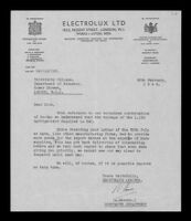 Letters between J B S Haldane's Secretary and Electrolux Ltd.