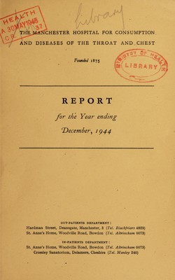 Credit: Report : 1944 / Manchester Hospital for Consumption and Diseases of the Throat and Chest. Source: Wellcome Collection.
