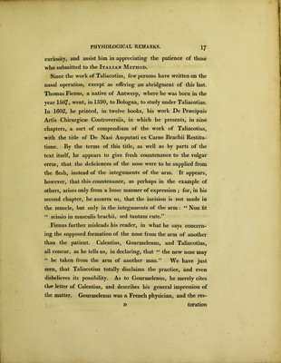 An account of two successful operations for restoring a lost nose from the integuments of the forehead in the cases of two officers of His Majesty's Army; to which are prefixed historical and physiological remarks on the nasal operation; including descriptions of the Indian and Italian methods / [J.C. Carpue].