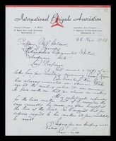 Credit: Letters from the International Brigade Association (IBA) to J B S Haldane. Source: Wellcome Collection.