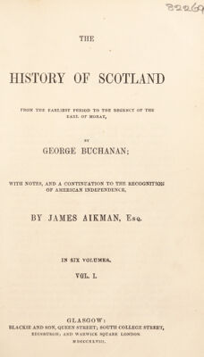 The history of Scotland from the earliest period to the regency of the Earl of Moray ... with notes, and a continuation to the recognition of American independence, by James Aikman / [George Buchanan].