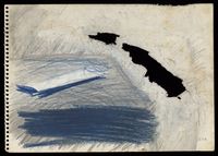 Pencil drawing in dark blue, light blue and grey