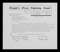 Letters between the Secretary of the People's Press Fighting Fund and J B S Haldane