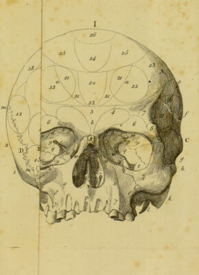 Credit: Physiologie intellectuelle ou développement de la doctrine du Professeur Gall sur le cerveau et ses fonctions, considérés sous le rapport de l'anatomie comparée, de l'organologie, de la céphalographie, de l'anthropologie, de la physionomie, etc. Suivie du rapport de la visite de Gall dans les prisons. De Berlin et de Spandau / [J.B. Demangeon]. Source: Wellcome Collection.