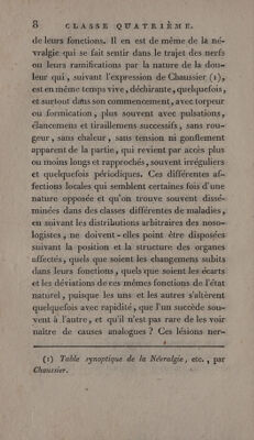 ![PHILOSOPHIQUE, | O U LA MÉTHODE DE L’ANALYSE APPLIQUÉE À LA MÉDECINE. CLASSE QUATRIÈME. NÉVROSES. / DCXxXIX. V 4 SANIES, spasmes, anomalies quelconques de l’action des nerfs, asphyxies ; quelle multiplicité, quel contraste de phénomèe- nes, les uns décrits par les auteurs , les autres observés chaque jour , quine viennent cependant que de deux sources uniques, des lésions du sentiment et du mouvement ! Le cerveaw, le cervelet , la moelle de l’épine ou les'nerfs, sont sans doute les parties primitives où se jouent ces . scènes variées qui confondent quelquefois par la rapidité de leur succession ou par leurs compli- 11]. nr? 1 Ê—-](https://iiif.wellcomecollection.org/image/b33088548_0002_0011.jp2/full/800%2C/0/default.jpg)
