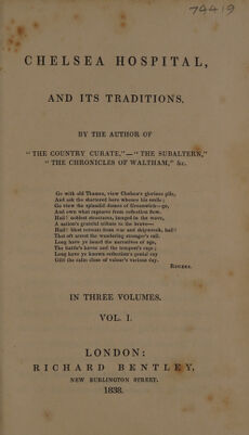 Chelsea Hospital and its traditions / By the author of 'The country curate' [i.e. G.R. Gleig] "The subaltern," "The chronicles of Waltham," &.
