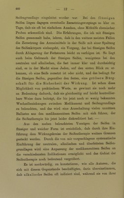 Beitrag zur Wu¨rdigung der medikamento¨sen Seifen unter Zugrundelegung von Seifen in flu¨ssiger und weicher Form / von Dr F. Buzzi.