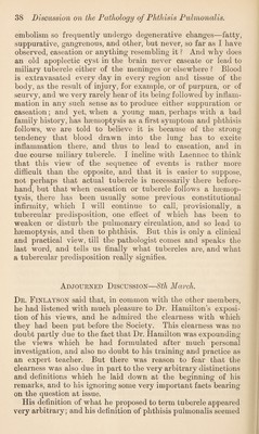 Discussion on the pathology of phthisis pulmonalis.