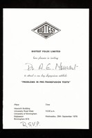 Credit: Programme of One Day Symposium on 'Problems in pre-transfusion tests', University of Birmingham, 29 September 1976. Source: Wellcome Collection.