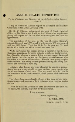 [Report 1951] / Medical Officer of Health, Dolgellau / Dolgelley U.D.C.