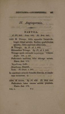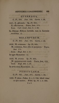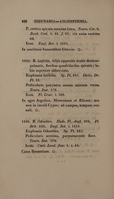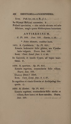 Floræ græcæ prodromus, sive, Plantarum omnium enumeratio / quas in provinciis aut insulis Graæciæ invenit Johannes Sibthorp. Characteres et synonyma, omnium cum annotationibus elaboravit Jacobus Edvardus Smith.