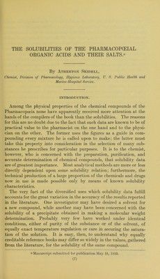 The solubilities of the pharmacopœial organic acids and their salts / by Atherton Seidell.