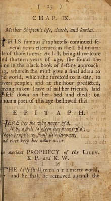 Credit: The strange and wonderful prophecies of Mother Shipton: plainly setting forth her prodigious birth, life, death, and burial / [Anon]. Source: Wellcome Collection.