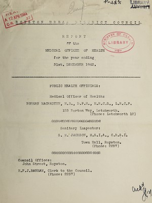 Credit: [Report 1942] / Medical Officer of Health, Royston (Hertfordshire) U.D.C. Source: Wellcome Collection.