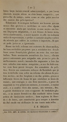 Discurso sobre a statistica medica do Brasil : lido na Sociedade de Medicina do Rio de Janeiro, na sessão publica de 30 de junho de 1832, anniversario da fundação da sociedade / pelo José Francisco Sigaud ; traduzido do francez.