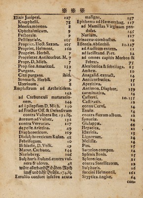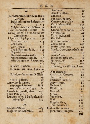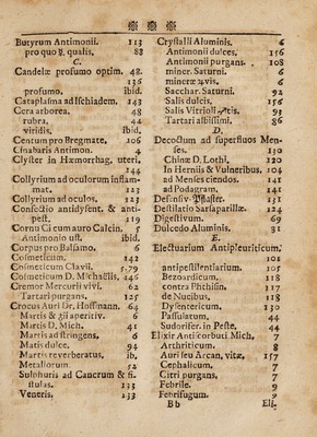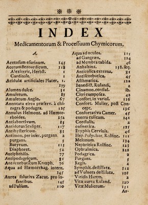 Credit: Thesaurus processuum chimicorum. Oder: Schatz chimischer Processen, welcher von denen vornehmsten Medicis je und allezeit secretirt, dem Autori aber schrifftlich communicirt worden, fast in allen Kranckheiten dienlich und nutzlich zugebrauchen, worinnen auch noch andere curieuse medicinische Heyl-Mittel und Kunst-Stücklein begriffen. Nicht sowohlen denen hohen Liebhabern der Erdlen Chimie, als auch andern nothleidenden Krancken zum Besten vorstellig gemacht wird / von Adolph Christoph Benz. Source: Wellcome Collection.