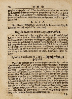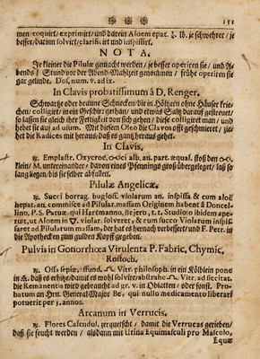 Credit: Thesaurus processuum chimicorum. Oder: Schatz chimischer Processen, welcher von denen vornehmsten Medicis je und allezeit secretirt, dem Autori aber schrifftlich communicirt worden, fast in allen Kranckheiten dienlich und nutzlich zugebrauchen, worinnen auch noch andere curieuse medicinische Heyl-Mittel und Kunst-Stücklein begriffen. Nicht sowohlen denen hohen Liebhabern der Erdlen Chimie, als auch andern nothleidenden Krancken zum Besten vorstellig gemacht wird / von Adolph Christoph Benz. Source: Wellcome Collection.