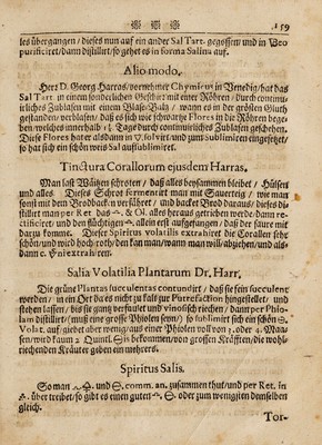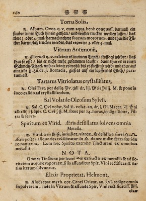 Credit: Thesaurus processuum chimicorum. Oder: Schatz chimischer Processen, welcher von denen vornehmsten Medicis je und allezeit secretirt, dem Autori aber schrifftlich communicirt worden, fast in allen Kranckheiten dienlich und nutzlich zugebrauchen, worinnen auch noch andere curieuse medicinische Heyl-Mittel und Kunst-Stücklein begriffen. Nicht sowohlen denen hohen Liebhabern der Erdlen Chimie, als auch andern nothleidenden Krancken zum Besten vorstellig gemacht wird / von Adolph Christoph Benz. Source: Wellcome Collection.