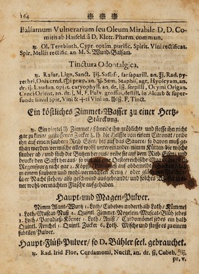 Credit: Thesaurus processuum chimicorum. Oder: Schatz chimischer Processen, welcher von denen vornehmsten Medicis je und allezeit secretirt, dem Autori aber schrifftlich communicirt worden, fast in allen Kranckheiten dienlich und nutzlich zugebrauchen, worinnen auch noch andere curieuse medicinische Heyl-Mittel und Kunst-Stücklein begriffen. Nicht sowohlen denen hohen Liebhabern der Erdlen Chimie, als auch andern nothleidenden Krancken zum Besten vorstellig gemacht wird / von Adolph Christoph Benz. Source: Wellcome Collection.