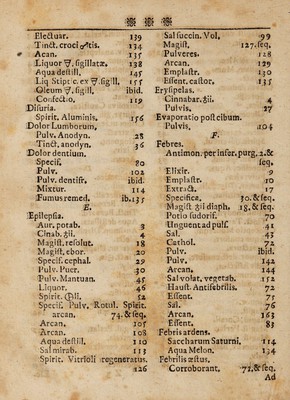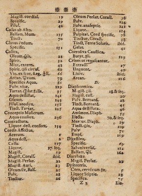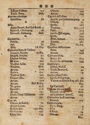 Credit: Thesaurus processuum chimicorum. Oder: Schatz chimischer Processen, welcher von denen vornehmsten Medicis je und allezeit secretirt, dem Autori aber schrifftlich communicirt worden, fast in allen Kranckheiten dienlich und nutzlich zugebrauchen, worinnen auch noch andere curieuse medicinische Heyl-Mittel und Kunst-Stücklein begriffen. Nicht sowohlen denen hohen Liebhabern der Erdlen Chimie, als auch andern nothleidenden Krancken zum Besten vorstellig gemacht wird / von Adolph Christoph Benz. Source: Wellcome Collection.