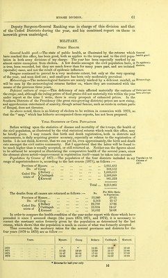 Credit: Medical and sanitary reports of the native army of Madras for the year 1873 : framed on the weekly an annual returns, on the reports of regimental medical officers, and on the inspection reports of deputy surgeons-general of the Indian Medical Department. Source: Wellcome Collection.