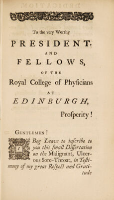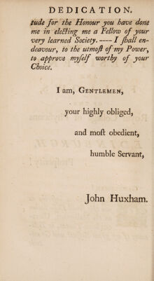 ![A dissertation O N T H E Malignant, ulcerous SORE.THROAT. fc- - ... ■■ B Y JOHN HUXHAM, M.D. Fellow of the Royal College of Pbyficians at Edittr burgh, and of the Royal Society at London-. LONDON: Printed for J. Hinton, at the King's-Arms in Neivgat e-Street, 1757. [ Price One Shilling. ]](https://iiif.wellcomecollection.org/image/b30546199_0001_0007.jp2/full/800%2C/0/default.jpg)