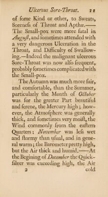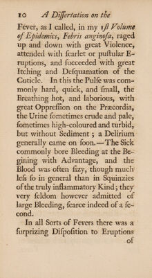 Credit: A dissertation on the malignant, ulcerous sore-throat / By John Huxham. Source: Wellcome Collection.