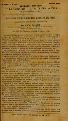 Chirurgie journalière des hopitaux de Paris : répertoire de thérapeutique chirurgicale / par P. Gillette.
