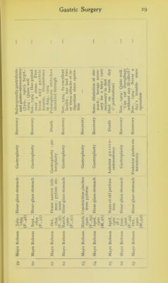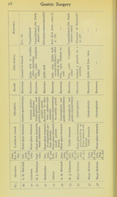Credit: Tables of cases to illustrate the Hunterian lectures on gastric surgery, to be delivered before the Royal College of Surgeons on February 19th, 21st, and 23rd / by Herbert J. Paterson. Source: Wellcome Collection.