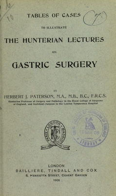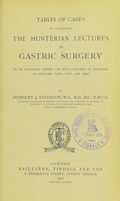 Tables of cases to illustrate the Hunterian lectures on gastric surgery, to be delivered before the Royal College of Surgeons on February 19th, 21st, and 23rd / by Herbert J. Paterson.