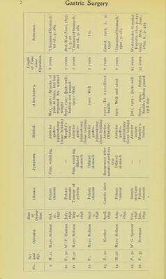 Credit: Tables of cases to illustrate the Hunterian lectures on gastric surgery, to be delivered before the Royal College of Surgeons on February 19th, 21st, and 23rd / by Herbert J. Paterson. Source: Wellcome Collection.