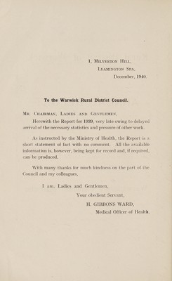 Credit: [Report 1939] / Medical Officer of Health, Warwick R.D.C. Source: Wellcome Collection.