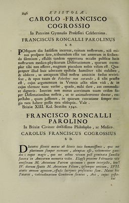 Historiae morborum observationibus auctae et clarissimorum virorum consultationibus atque epistolis illustratae / [Francesco Roncalli Parolino].