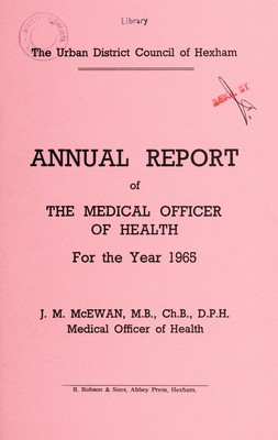 Credit: [Report 1965] / Medical Officer of Health, Hexham U.D.C. Source: Wellcome Collection.