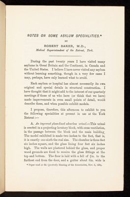 Robert Baker, Notes on some Asylum Specialties in use at the Retreat, York (York 1890)